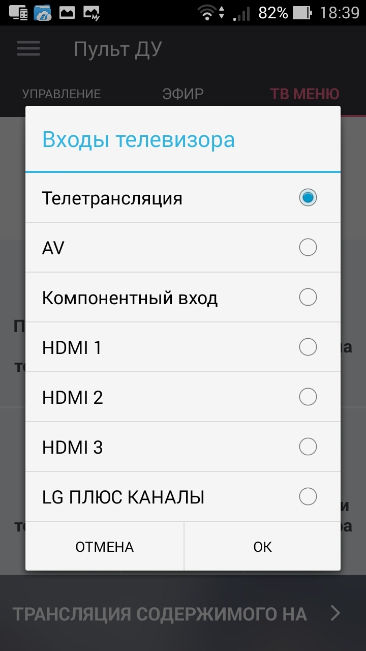 Управление через смартфон/планшет.Приятной особенностью телевизора LG 32LK6190 является возможность управлять им почти в полной мере с телефона на базе ОС Андроид или Эппл. Дисплей телефона можно использовать в качестве мыши. Управление громкость, тв каналами, вызов настроек и т. д. Получается, практически, второй пульт управления. Можно транслировать содержимое телефона/планшета на экран телевизора. Согласитесь, удобно? Сфотографировал на камеру мобильника и сразу на большом дисплее можно смотреть снимок. Управлять установленными приложениями на ТВ непосредственно из самой программы нельзя, можно только запускать.
