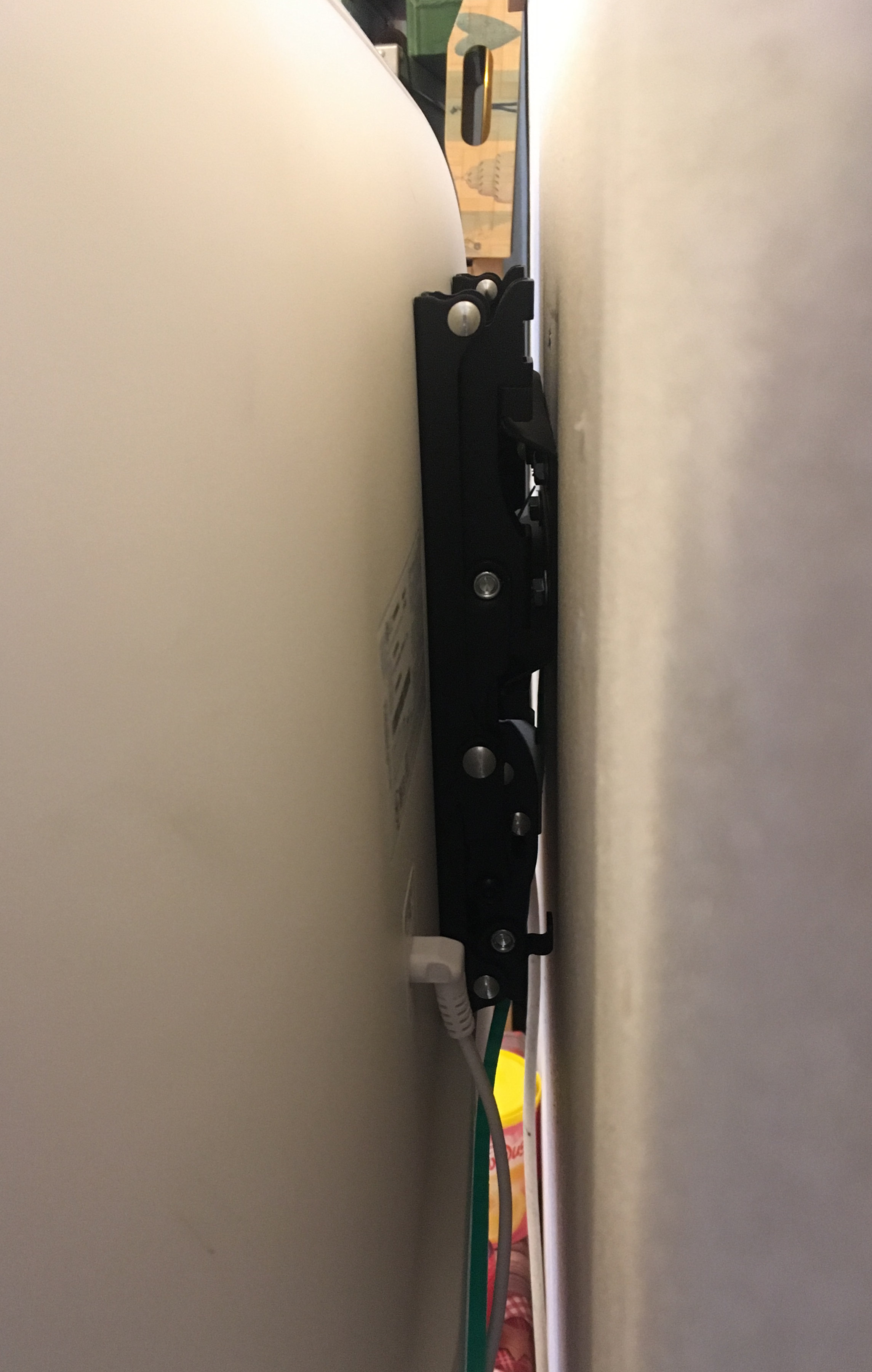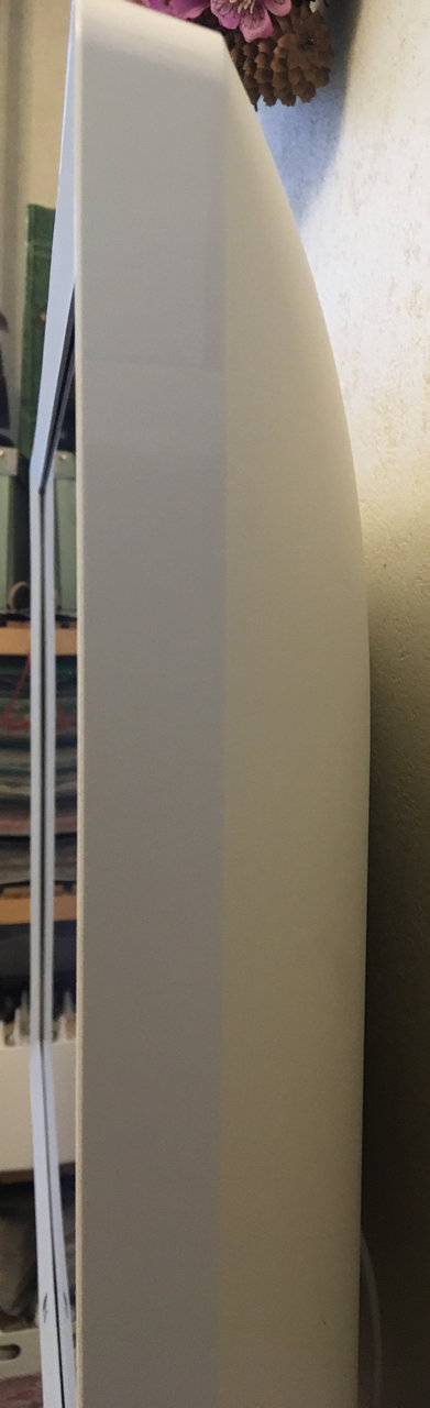 Ширина рамки вокруг дисплея 22мм. Телек не греется, со всех сторон холодный. Немного теплый в районе верхней вентиляционной решетки.