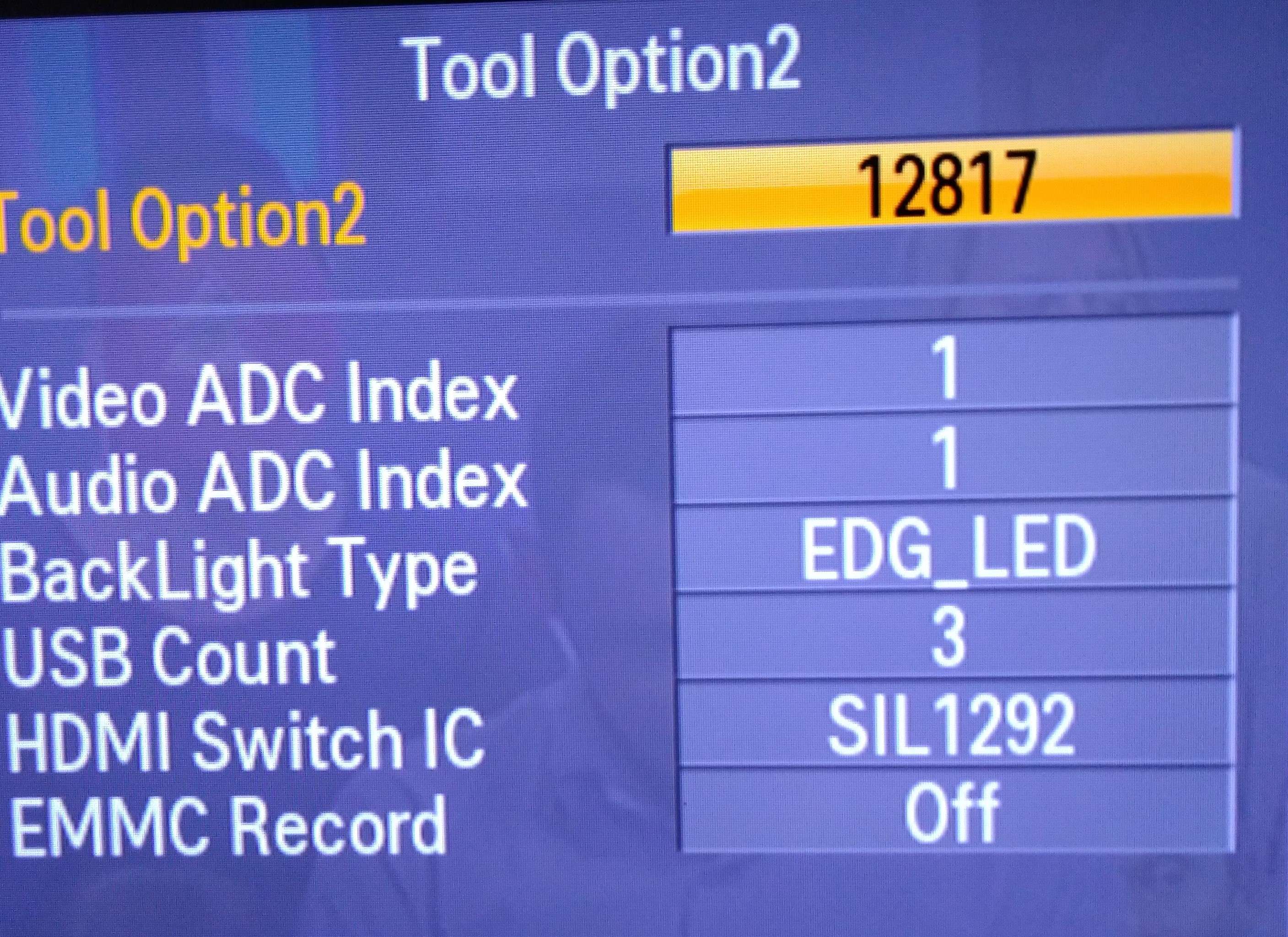 Mikhail78 писал(а):Приветствую всех! Помогите пожалуйста, нечаянно в сервисном меню телевизора 42LB652V шасси LD42B tool option2 изменил контрольную сумму на 0, а что там было не запомнил... не работает теперь HDMI ни один из 3-х.