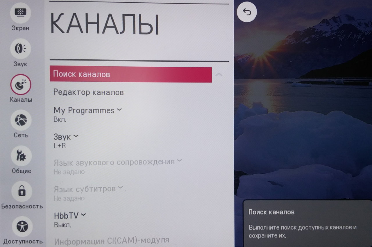 Поиск каналов на телевизоре LG