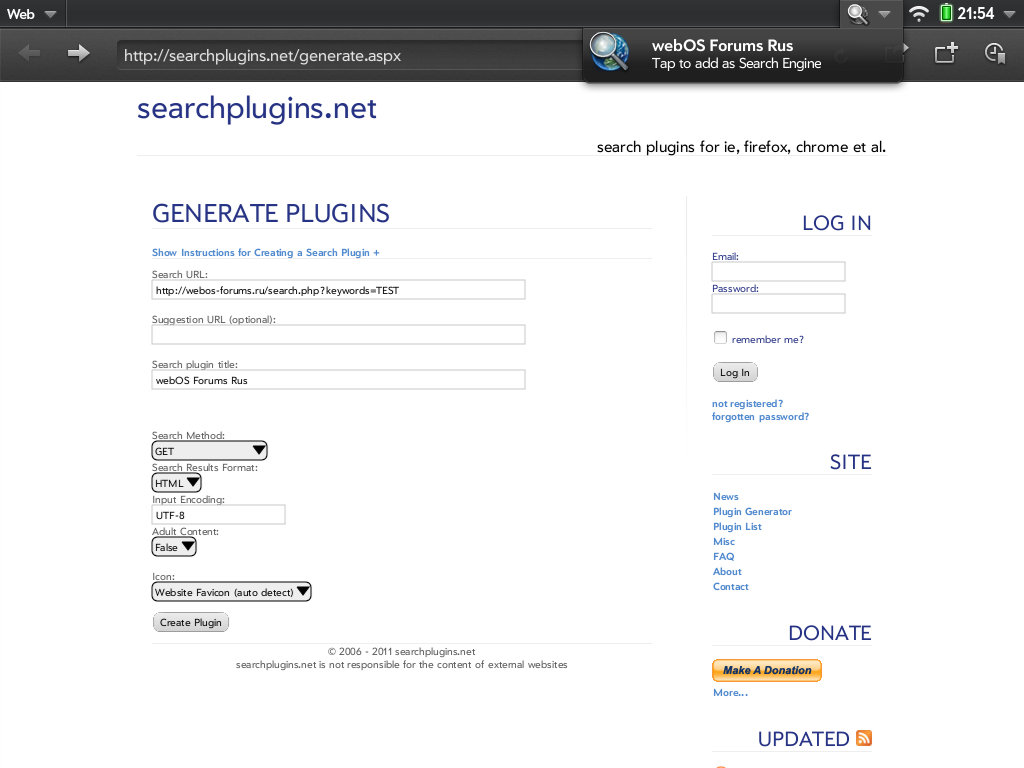 - Откройте страницу http://www.searchplugins.net/generate.aspx в браузере устройства.