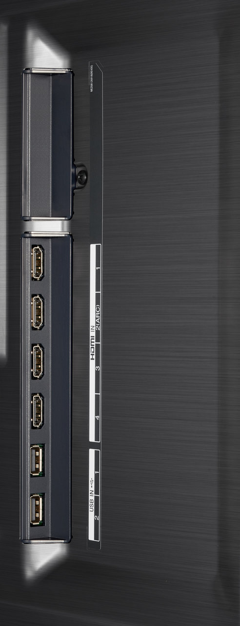 Боковая панель оснащена четырьмя входами HDMI v2.1 (один из которых совместим с ARC), двумя разъемами USB 2.0 и слотом условного доступа CI+. Кроме того на борту имеется встроенный Wi-Fi модуль (с поддержкой стандартов 802.11a, 802.11b, 802.11g, 802.11n, 802.11n 5 ГГц, 802.11ac, Wi-Fi Direct).