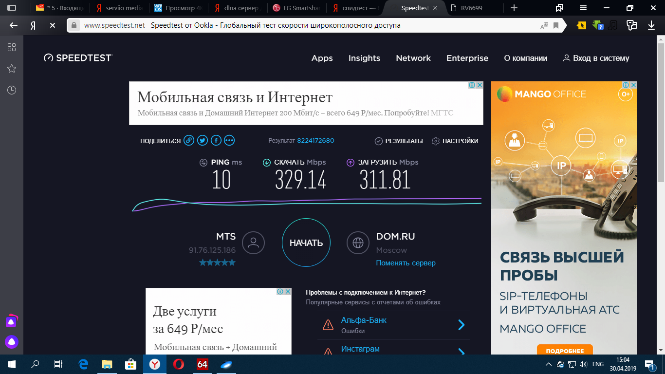 А это к чему? Вроде DLNA не завязана на скорость подключения к ИнтернетуВот что может С8 и модем от МТС SERCOMM RV6699. Соединение по WiFi 5G.