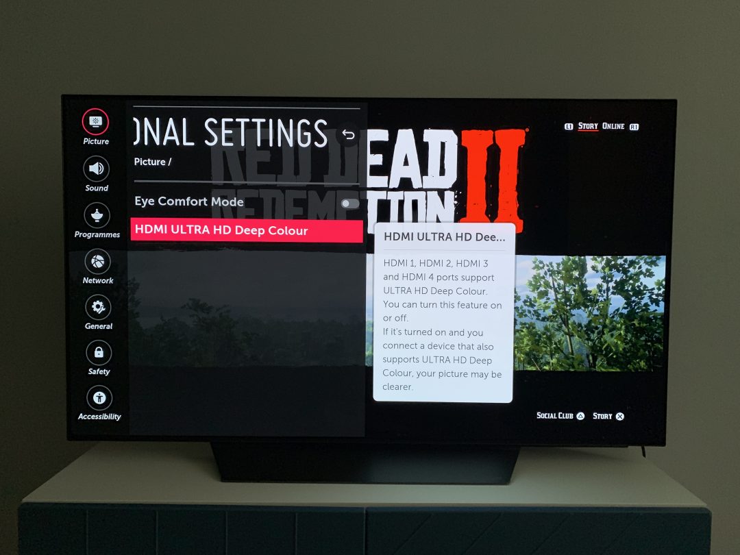 Многие не знают, что для HDMI в webOS нужно включать поддержку HDR. Если почитать инструкцию, то можно узнать, что для этого нужно зайти в меню «Изображение» - «Дополнительные настройки» и там в разделе ULTRA HD Deep Color включить для всех ваших HDMI возможность работы с HDR-контентом.