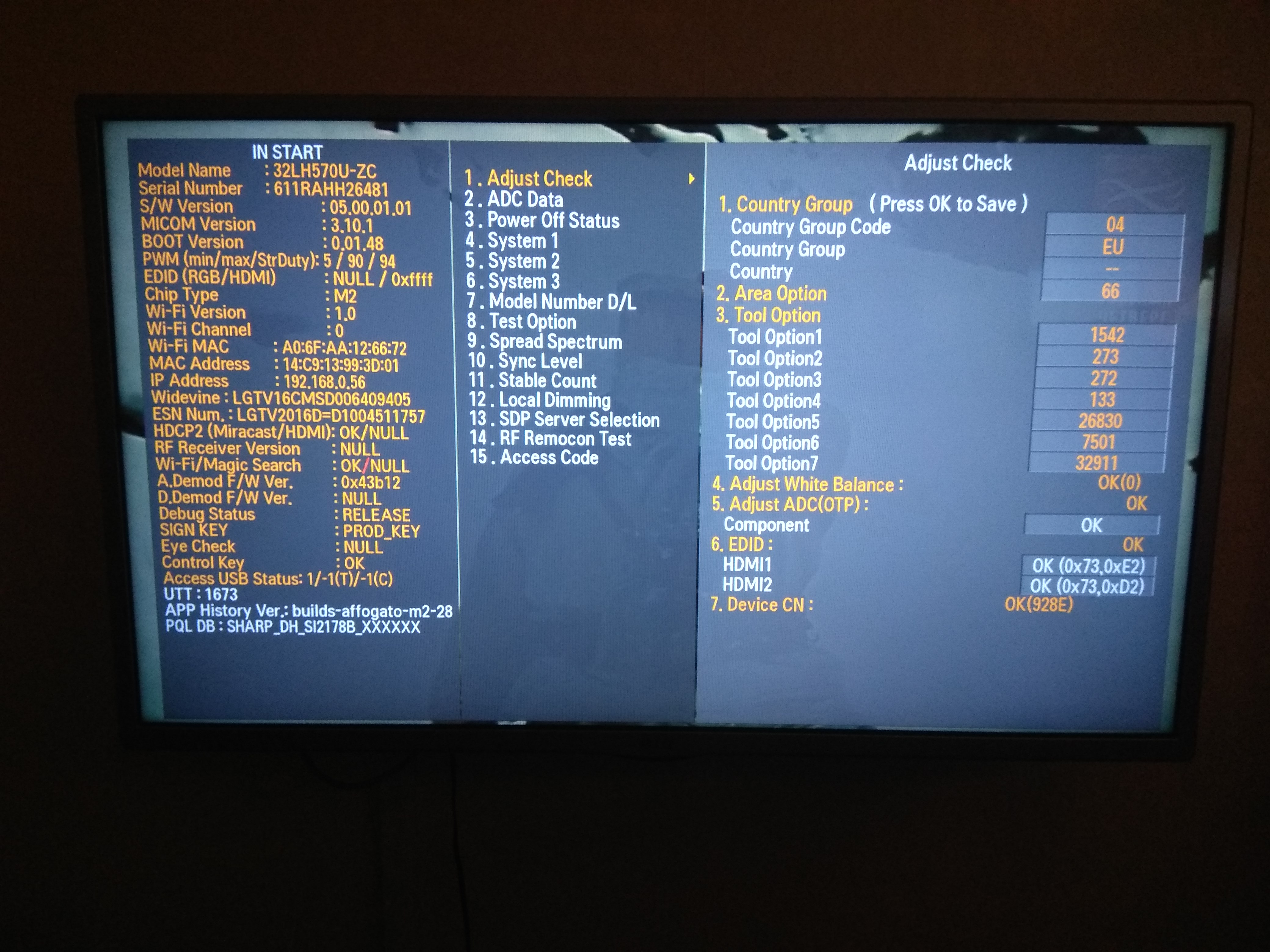 У меня получилось зайти в сервисное меню телевизора, но непонятно, что там менять. Прошивка последняя (05.00.01.01).