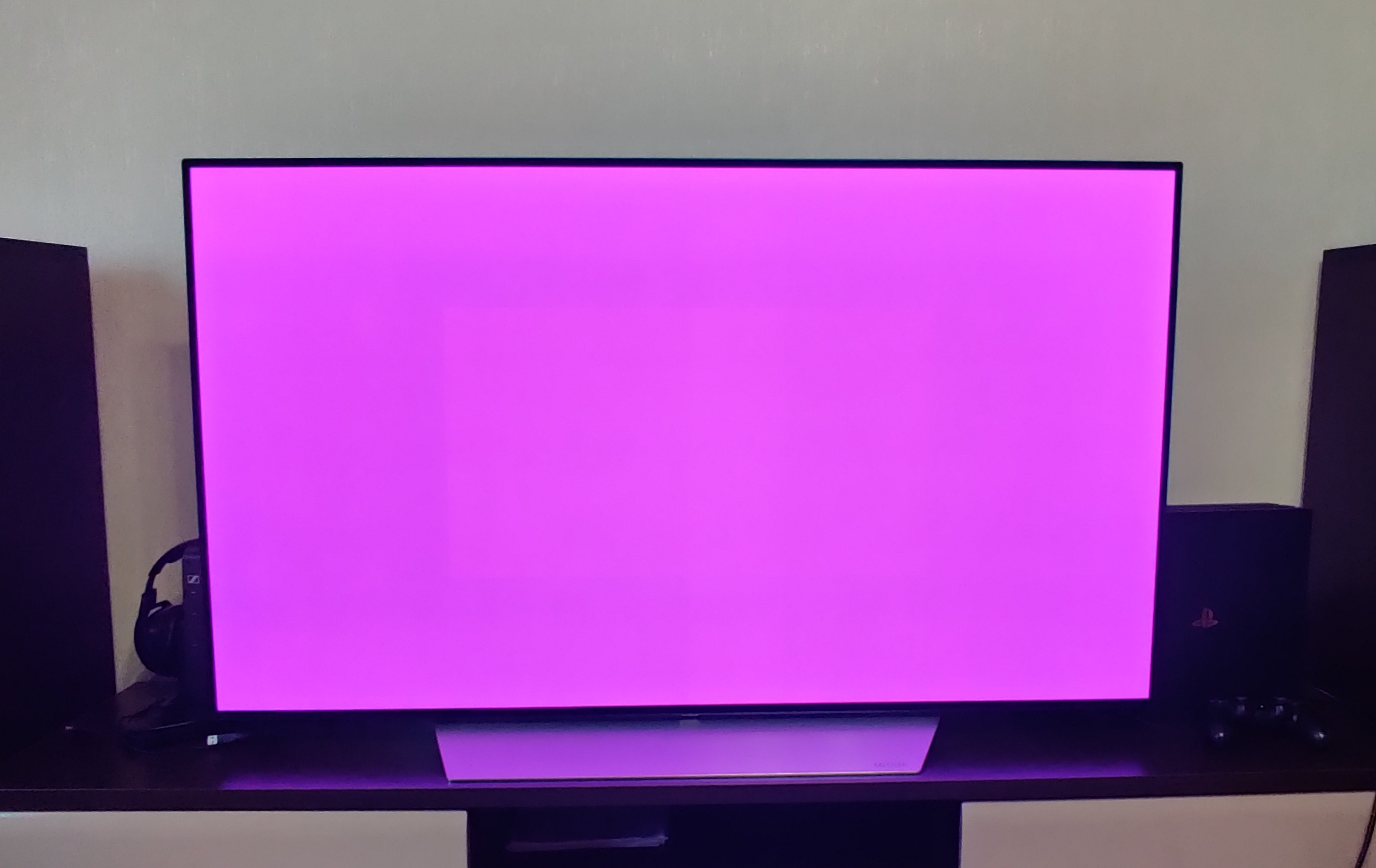 Телевизоры, которые не имеют гарантии или даже 5 лет спустя, поэтому, если у вас возникла такая же проблема, попросите их позвонить, и они отправят кого-то, чтобы исправить ее в вашем доме. Мы разрешили им решить эту проблему на наших двух телевизорах, затронутых проблемой, и процесс включает удаление задней части телевизора для доступа к служебному порту и подключение компьютера для обновления таблицы поиска. Здесь вы можете увидеть наши фотографии однородности до и после применения этого исправления. Обратите внимание, что другие проблемы однородности в результате статического контент не фиксирован, только это окно 25%.