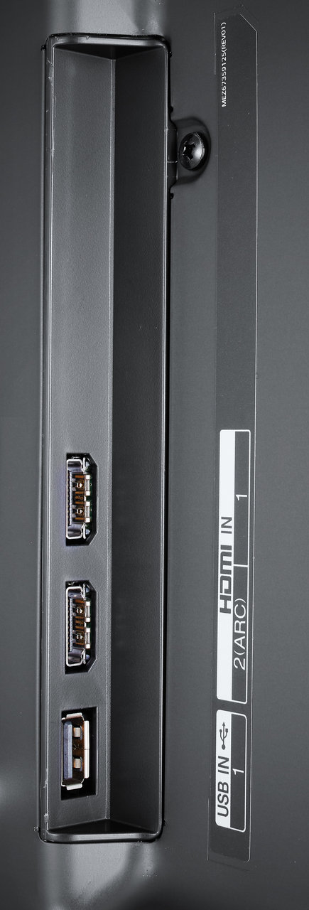 Боковая панель оснащена двумя входами HDMI v2.0 (один из которых совместим с ARC), одним разъемом USB 2.0 и слотом условного доступа CI+. Кроме того на борту имеются встроенные беспроводные модули Wi-Fi (с поддержкой стандартов 802.11a, 802.11b, 802.11g, 802.11n, 802.11n 5 ГГц, 802.11ac, Wi-Fi Direct) и Bluetooth (поддерживается сопряжение с совместимыми устройствами по протоколу Bluetooth 5.0).