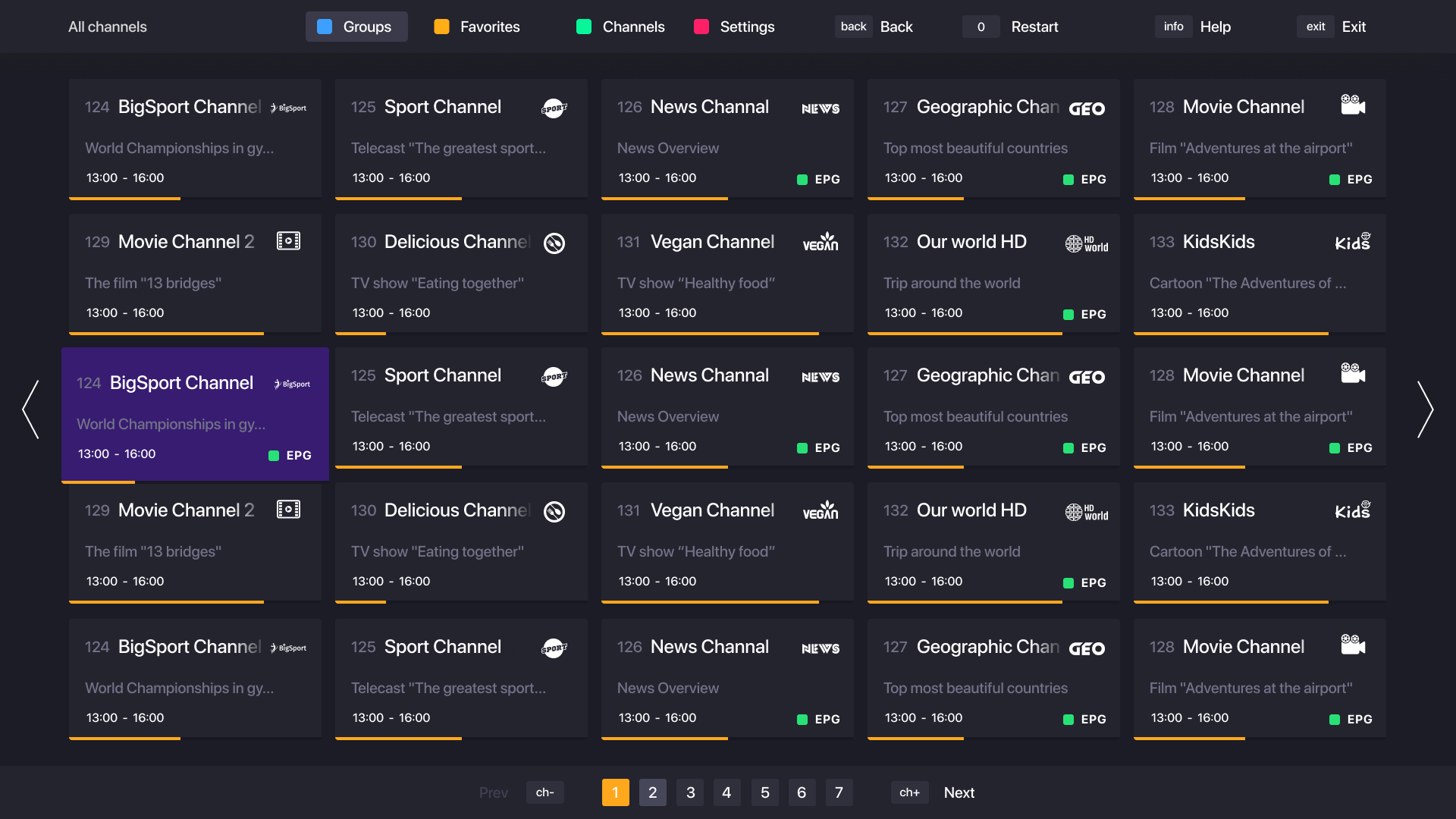 1. Практически у всех не очень удобный интерфейс. Не понятно, почему так модно представление в виде плиток? По мне, гораздо удобнее вид узких прямоугольников слева или справа (плейлисты), а по середине экрана дополнительная информация (список каналов).