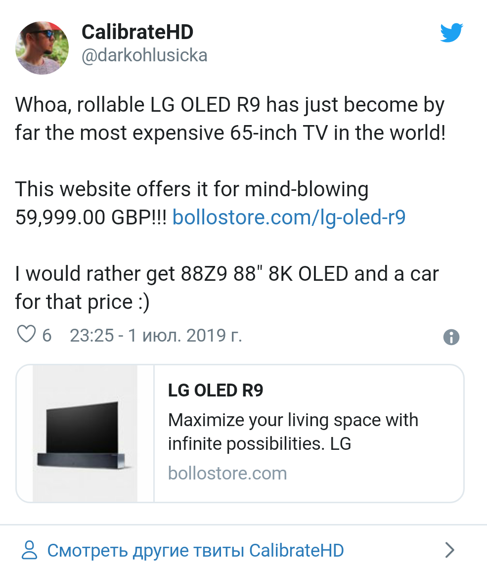 Re: Телевизор LG OLED 65R9 2019 года