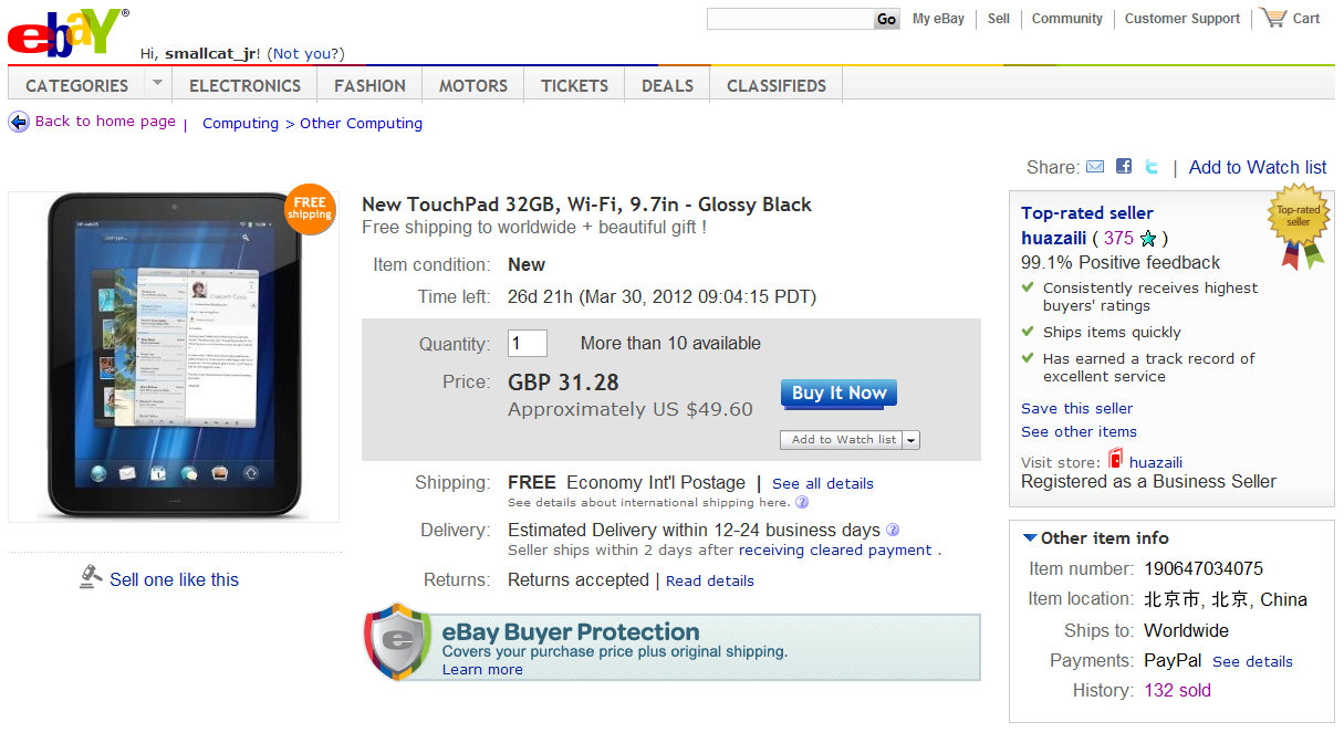 *- HP 32GB TouchPad