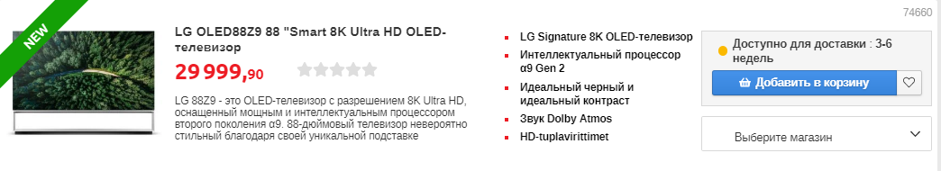 Кто хочет купить LG OLED 88Z9 - добро пожаловать в Финляндию!