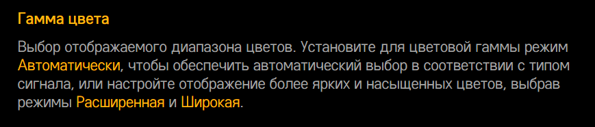 А гамма цвета - широкая или супер широкая или авто? По умолчанию стоит широкая.