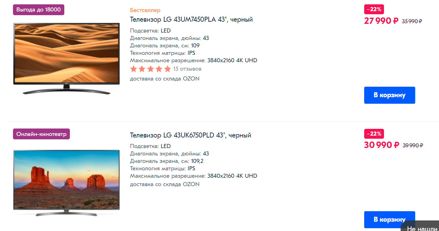 Искал с nanocell, но сайт lg выдал только морально устаревший LG 43UJ750V.