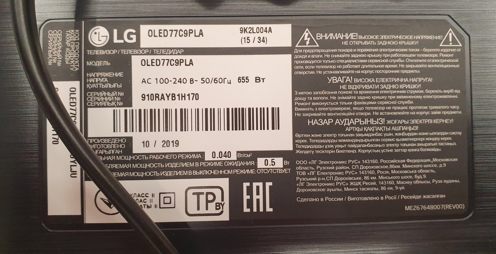 А так тут narpol @ Телевизор LG SM9000 (49,75,86") 2019 года видно, как выглядит шилдик ТВ для РФ (где EAC)