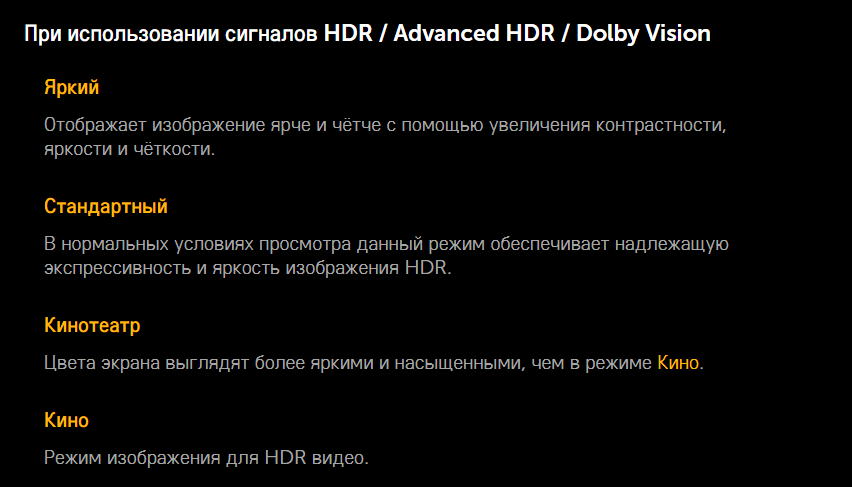 когда включаешь на ИВИ фильм в HDR, название настройки "Режим Экрана" превращается в "Режим HDR", а там уже можно выбирать стандартный, яркий и тд