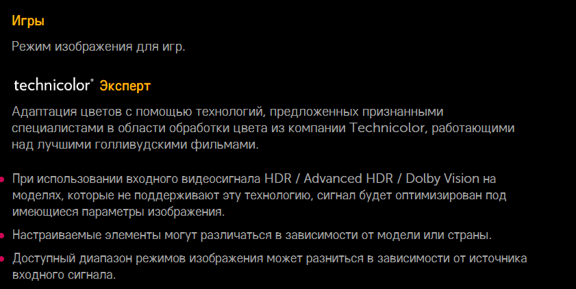 совершенно соответствует тому, что доступно, а что неактивно в случае работы с HDR-сигналом.