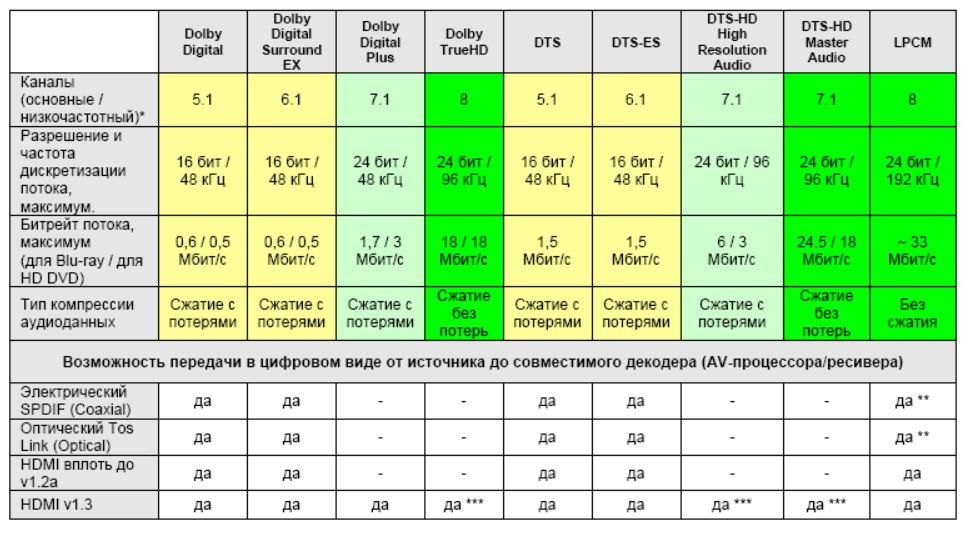 П. С. Не обращая внимание на отсутствие комментария зачем гнать музыку (где критичен джиттер) через ТВ, может поможет разобраться со звуком таблица с одного из Ваших источников