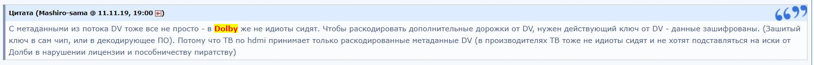 Ну тогда для остальных, кто будет "делать выводы и умозаключения", предупреждение, что изложенные факты не подтверждены и руководствоваться ими пока не стоит, тем более с учетом того, что пользователь был предупрежден о необходимости подтверждения излагаемой информации. Поэтому информацию по возможности получения и вывода DV плеером угос стоит считать не соответствующей действительности и до предоставления или самостоятельного обнаружения доказательств не не принимать ее в расчет при выборе внешнего источника.