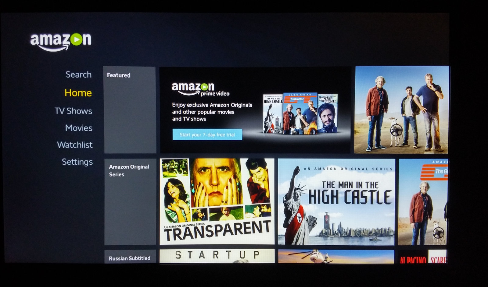 В декабре 2016 года компания Amazon официально запустила свой сервис видео по запросу Prime Video по всему миру, включая Россию, Украину и Беларусь. В отличие от большинства отечественных аналогов, премиум-видеосервис от Amazon предлагает широкий ассортимент эксклюзивных шоу и сериалов, доступных только подписчикам Prime. Например, The Grand Tour, Mozart in the jungle или Man in high castle, новые эпизоды которых, впрочем, в России выходят с некоторой задержкой. Все они распространяются только с английской аудиодорожкой. Для удобства русскоязычных зрителей предусмотрены субтитры.