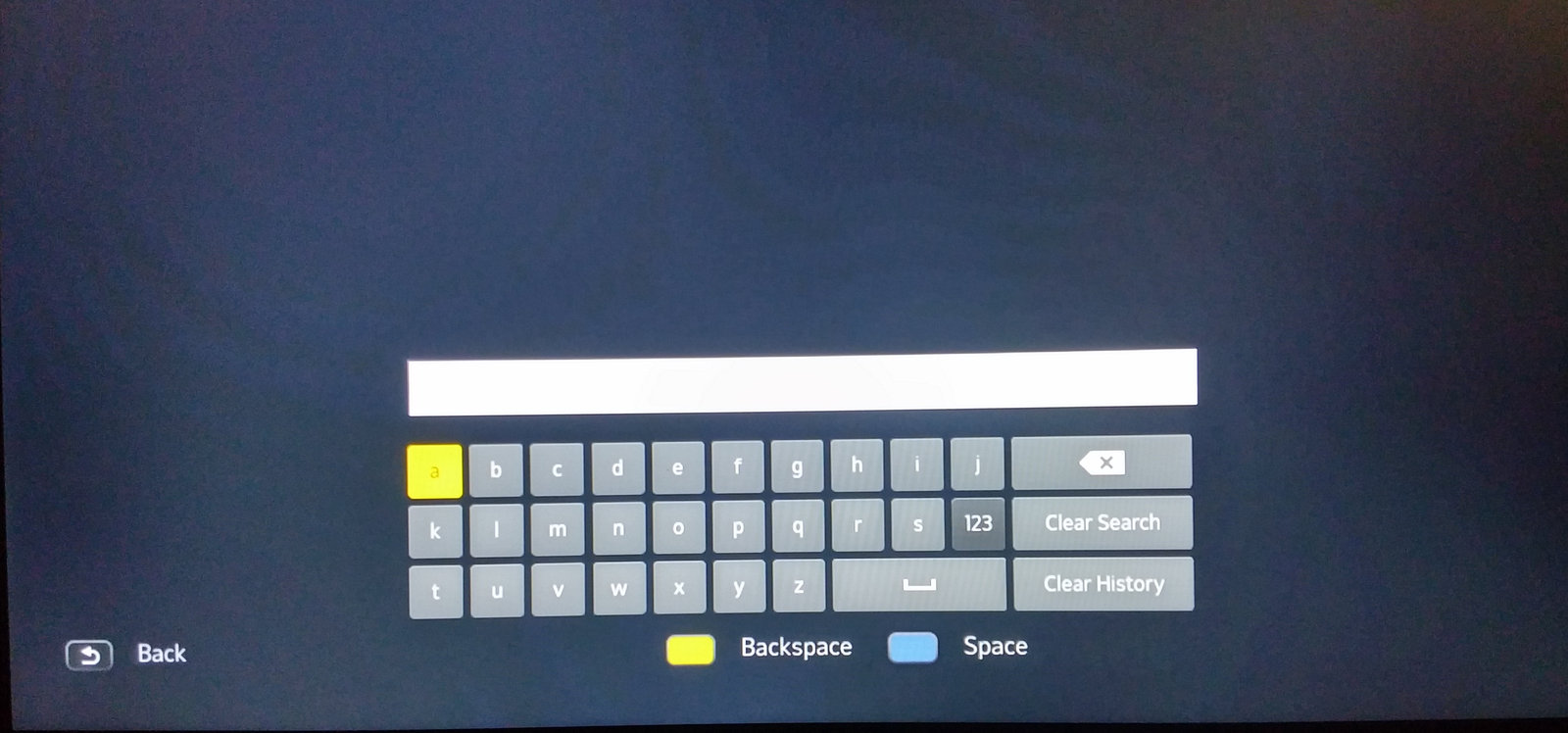 Нажав на синюю клавишу пульта попадаем в окошко поиска. Интерфейс поиска весьма аскетичный, нет возможности поискать по расширенным параметрам типа языка озвучки или субтитров.