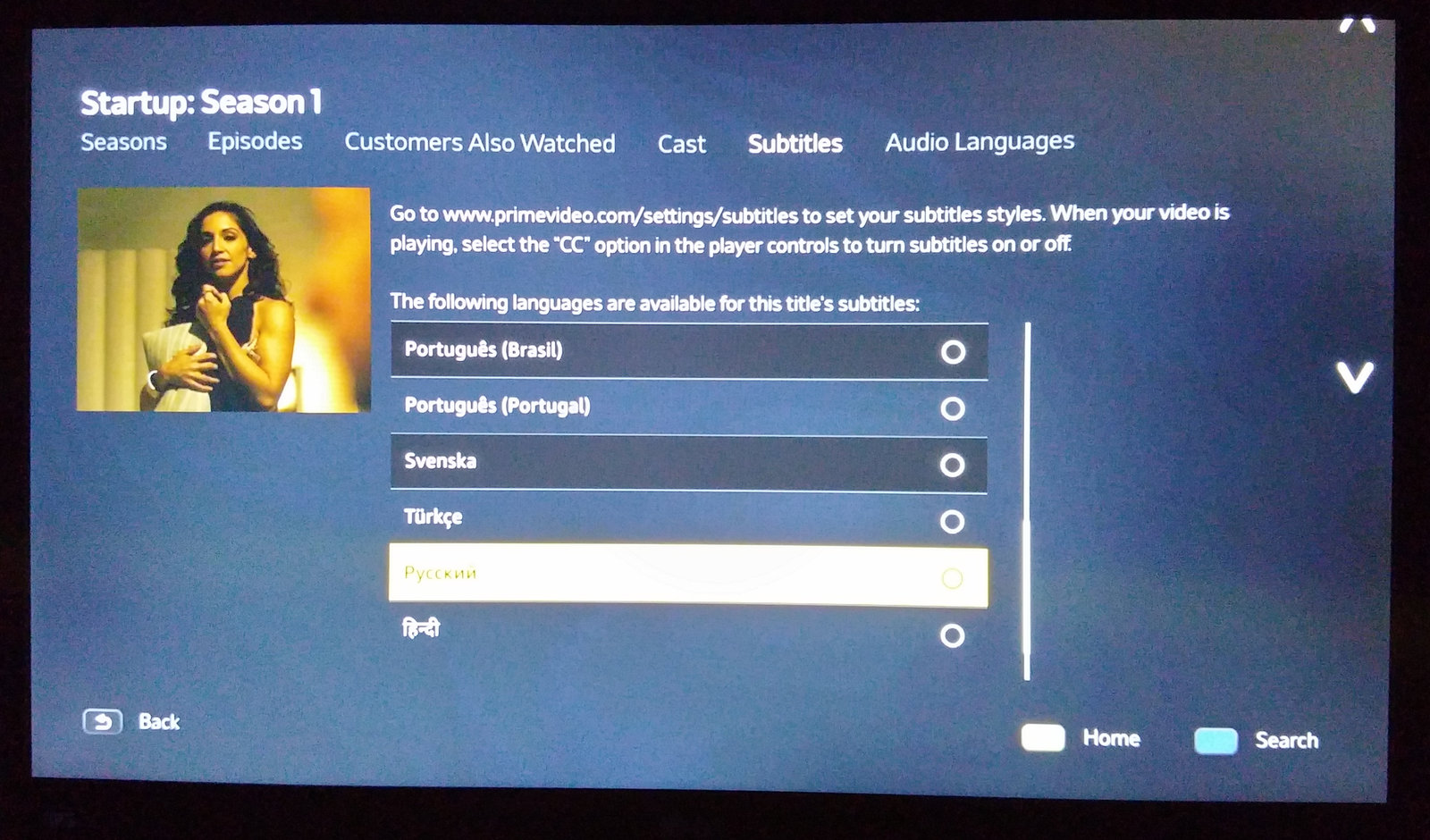 Что касается поддержки русского языка с помощью субтитров - на данный момент в Prime Video присутствует всего три страницы с фильмами и сериалами, оснащёнными русскими субтитрами.