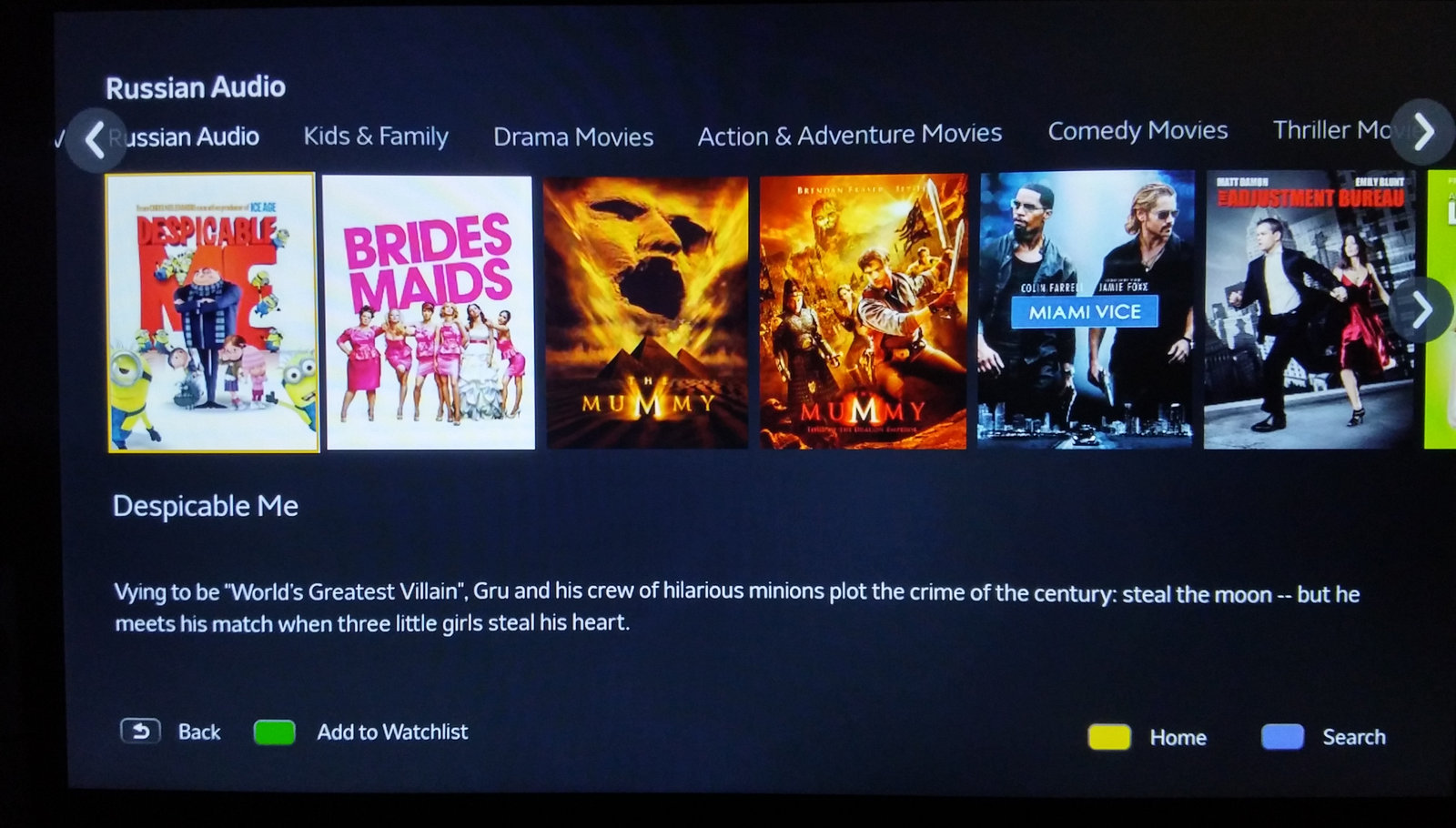 Для русскоязычных пользователей есть также раздел "Russain Audio" (русский звук). Тут можно выбрать и посмотреть фильмы, сериалы и мультики с русской озвучкой.