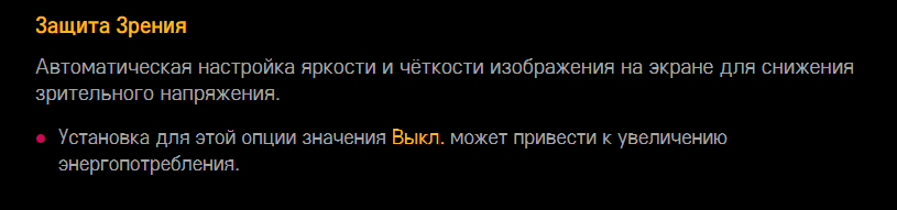 Так же очень странно, в TV ШИМ нет или не видно по крайней мере (не ловит камера даже), но глаза устают менее чем за час просмотра у меня, моих знакомых и жены. Я специально изначально никому не говорил об этом и спрашивал уже только в конце фильма или как замечал что начинают тереть глаза. В настройках есть функция "Защита глаз", что именно она дает - не понятно...