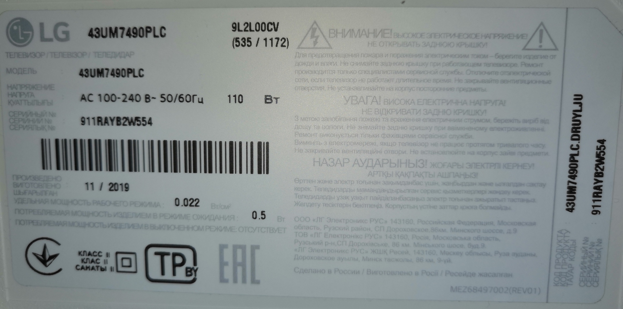 ТВ предназначен для РФ, собран в РФ на российской (вероятно) плате и в нем установлена матрица стороннего производителя HEESUNG ELECTRONICS LTD Korea, тип ADSДа, уже выяснили narpol @ Остаточное изображение на ЖК телевизоре (выгорание экрана) (предистория выше)Матрица стороннего производителя, вот может потому остаточного изображения нет.