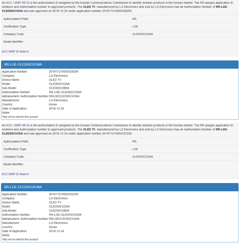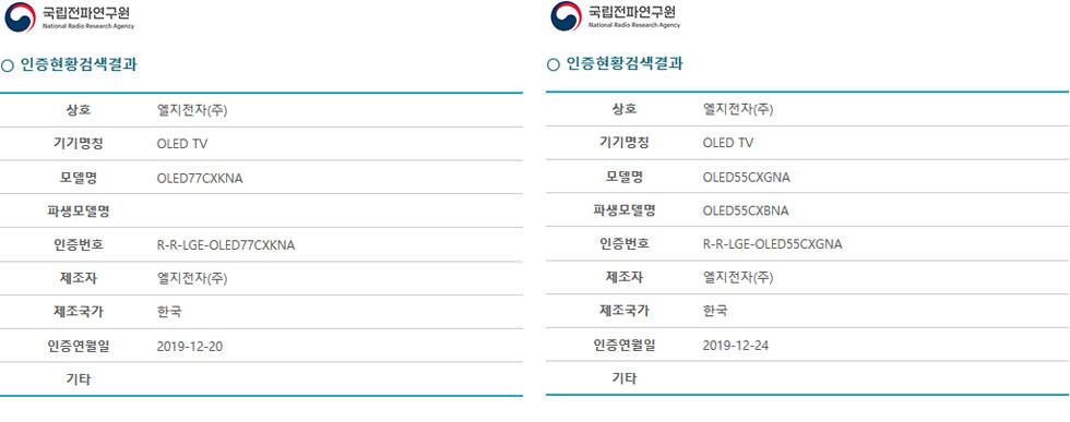 По данным Национального научно-исследовательского института радио, LG Electronics завершила радиоволновую сертификацию телевизоров OLED, которые будут выпущены в следующем году, включая модели OLED65BXGNA, OLED65BXGNA, OLED65CXGNA, OLED77CXKNA и OLED65GXKNA. Электронные устройства, выпущенные в Корее, должны получать сертификацию радио от Исследовательского института радио, чтобы предотвратить проблемы радиопомех перед запуском. Время запуска продукта зависит от стратегии управления каждой компании.