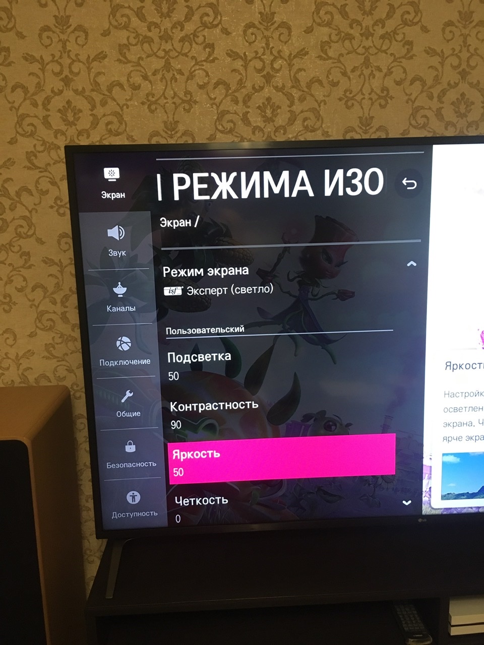 Подключил тв к домашней сети, обновил прошивку и занялся настройками картинки, тк яркость подсветки из коробки зашкаливала. Для себя выбрал два режима ISF и настроил их под дневной и вечерний просмотр, изменив в основном только яркость подсветки на 50 и 25 соответственно.