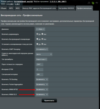 Первым делом посмотрел настройки беспроводной сети "центрового" роутера ASUS RT-AC52U_B1.