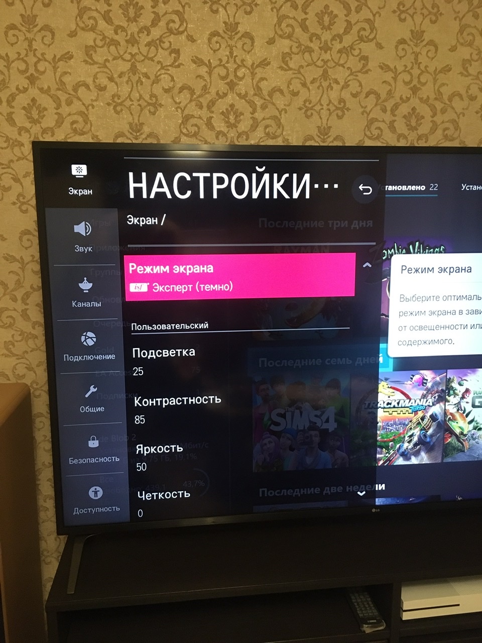 Подключил тв к домашней сети, обновил прошивку и занялся настройками картинки, тк яркость подсветки из коробки зашкаливала. Для себя выбрал два режима ISF и настроил их под дневной и вечерний просмотр, изменив в основном только яркость подсветки на 50 и 25 соответственно.