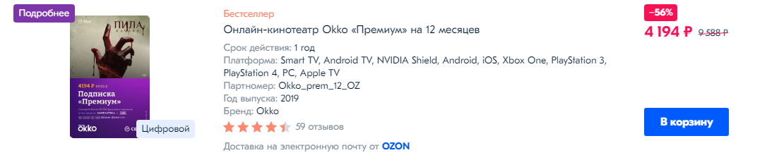 Новый промокод на 60 дней подписки в онлайн-кинотеатр Okko