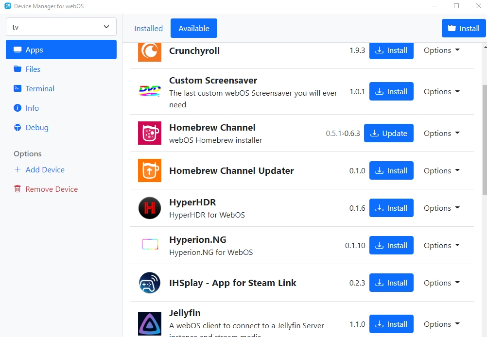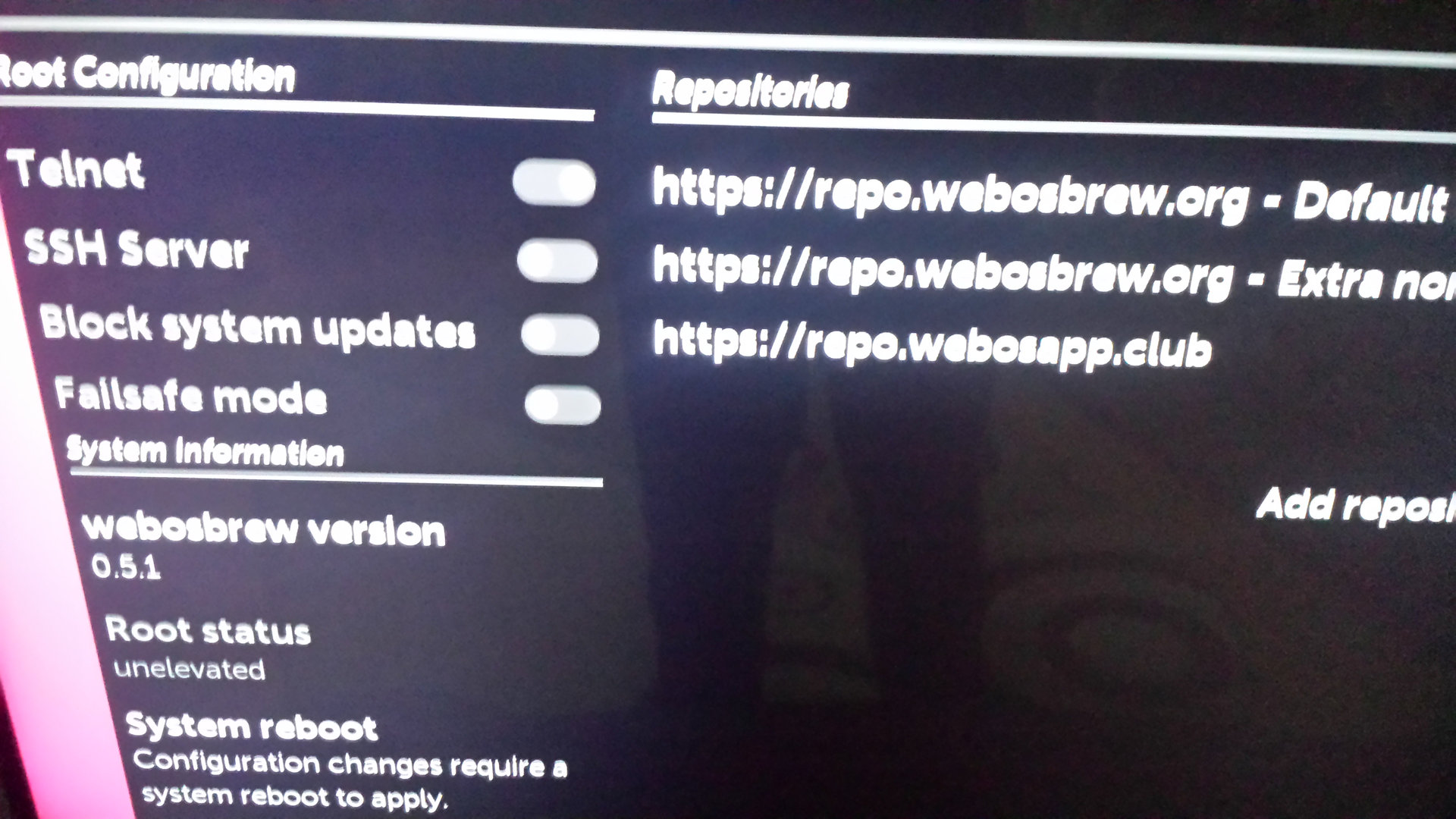 Значит рут не получили, раз магазин приложений не установился через rootmy.tv. Используйте ручной способ из первого сообщения, [rootmy.tv] Как получить Root права на webOS.