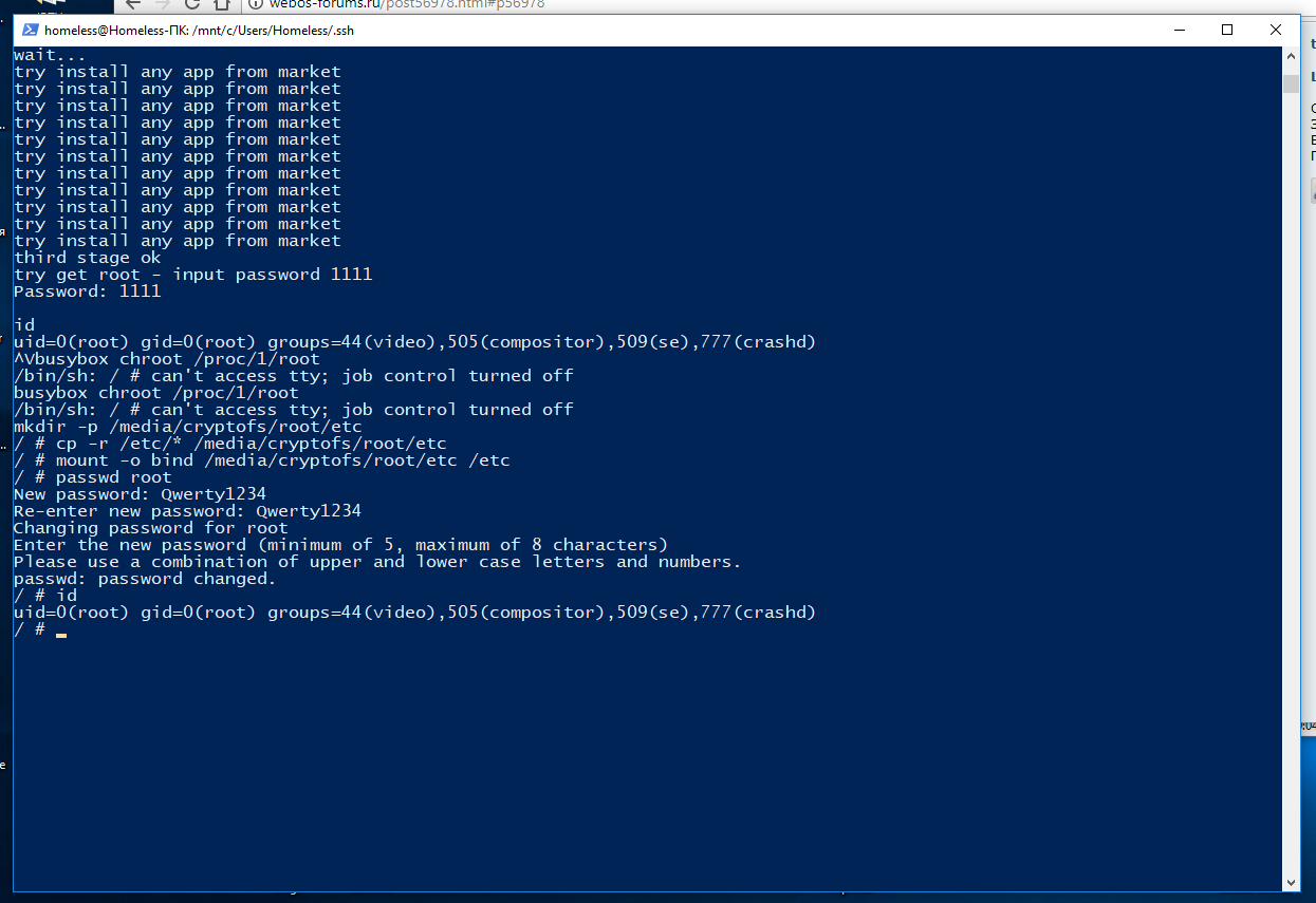 Но рут так и не получен. Если быть точным, он временный,ровно до перезагрузки ТВ.