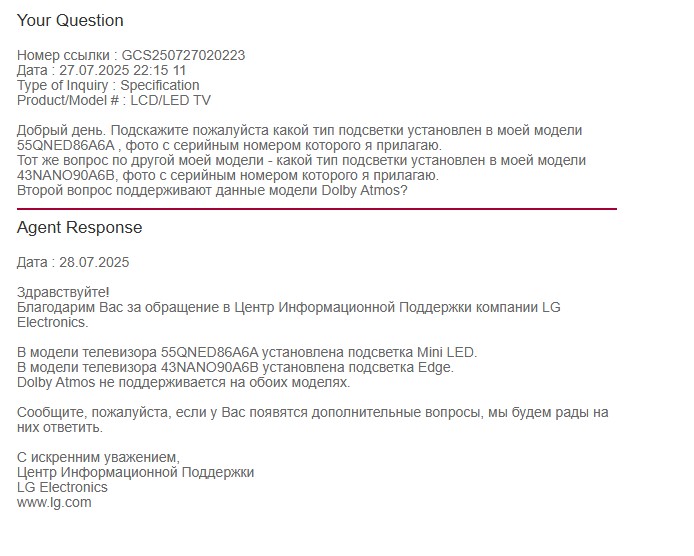 Ну маркировка тоже ведь лучше все-таки фото с маркировкой. но 86 - с буквой F это IPS - что подтвердили в оф центре по серийному номеру что я им высылал. Будет возможность посмотрю на засветы - но это однозначно брак Добавлено спустя 1 минуту 16 секунд: Добрый день! Купили телевизор LG 55QNED86A6A,...