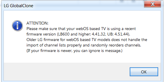 Друзья, подскажите где копать? Тв LG43UJ630V отсканировал каналы со спутника, скопировал список каналов на юсб флешку, отредактировал в редакторе. При попытке загрузить список в тв выдает "При копировании каналов произошла ошибка.(Не удалось инициализировать устройство, CLONING_ERROR_07)" ...
