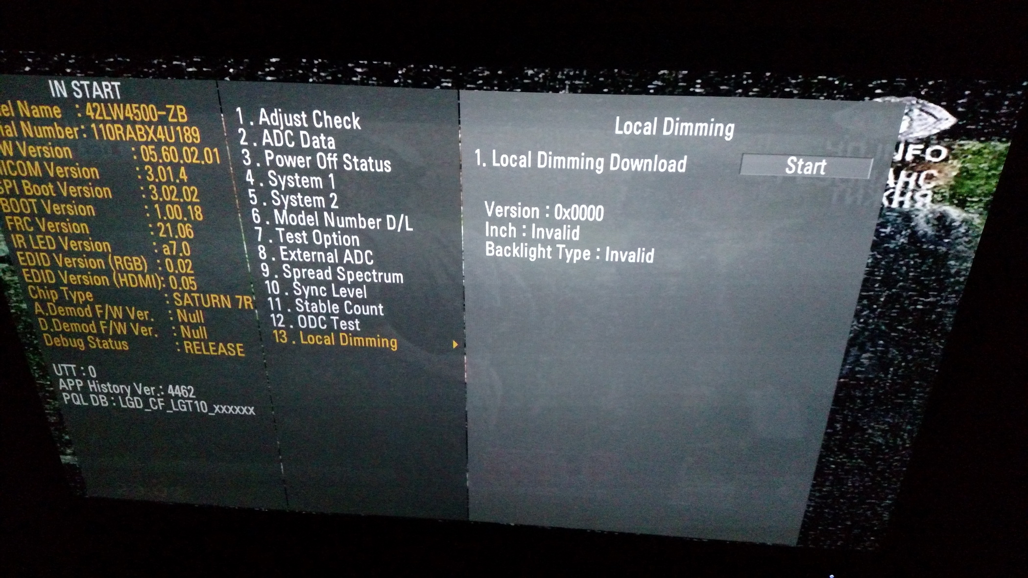 42LW4500 local dimming в сервисном меню EZ-ADJUST