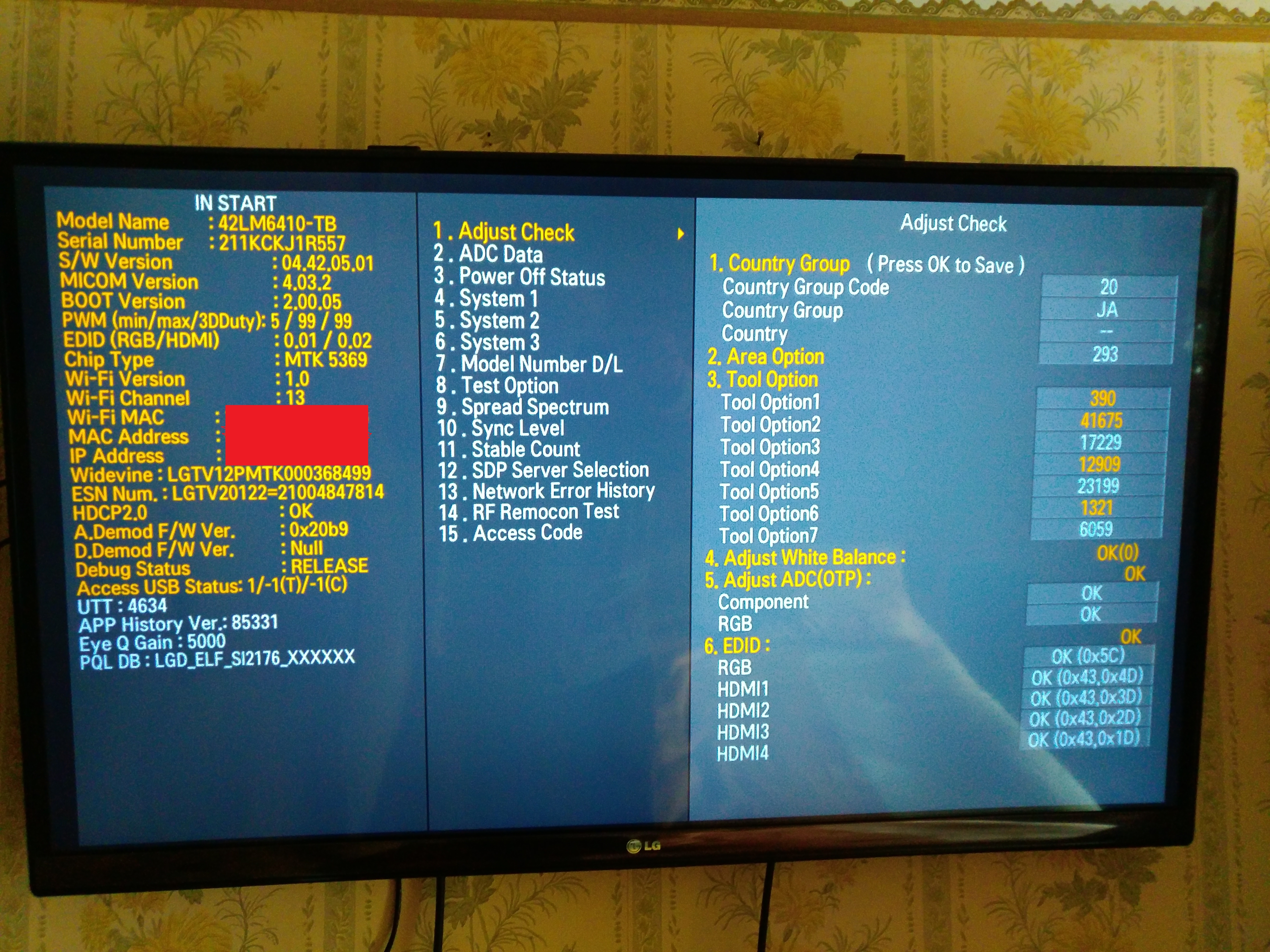 добрый день! люди,захотел сменить регион на телевизоре 42 lm 6410 , зашел в сервисное меню ez-adjust но оно оказалось не такое как у других