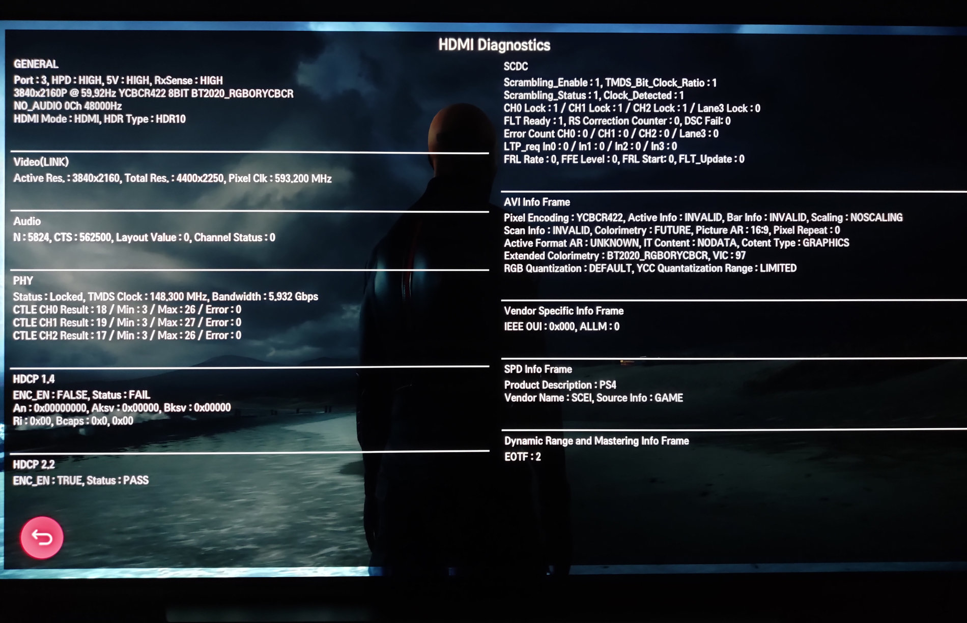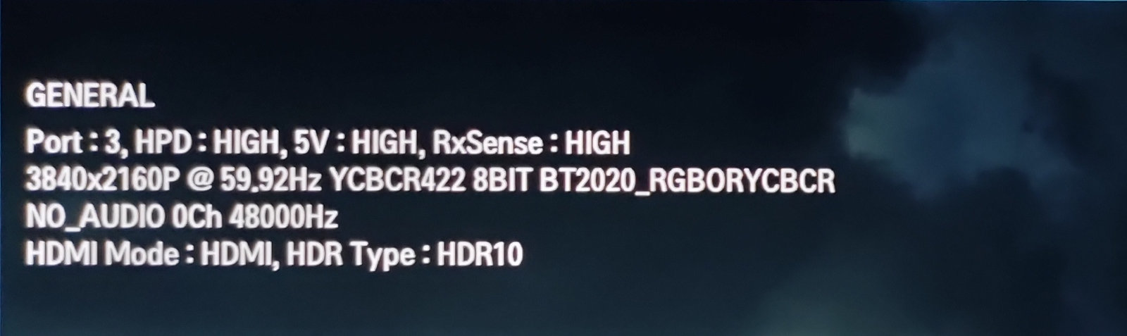 В данном меню можно также посмотреть какой сигнал приходит на ТВ по HDMI. На картинке ниже формат сигнала с PlayStation 4.
