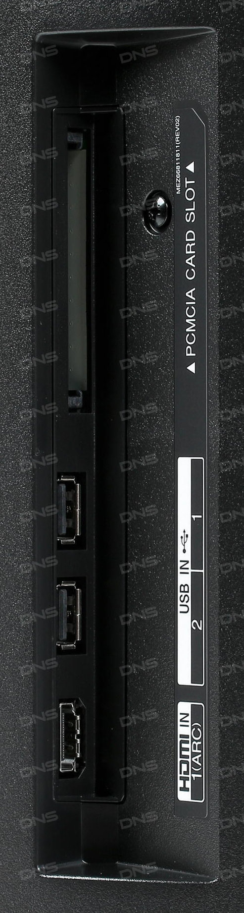 Боковая панель оснащена одним HDMI входом (с поддержкой технологии ARC), двумя разъемами USB 2.0 и слотом условного доступа CI+ новейшей версии 1.4. Кроме того на борту имеются встроенные беспроводные модули Wi-Fi (с поддержкой стандартов 802.11a, 802.11b, 802.11g, 802.11n, 802.11n 5 ГГц, 802.11ac, Wi-Fi Direct) и Bluetooth (поддерживается сопряжение с совместимыми устройствами по протоколу Bluetooth 5.0)