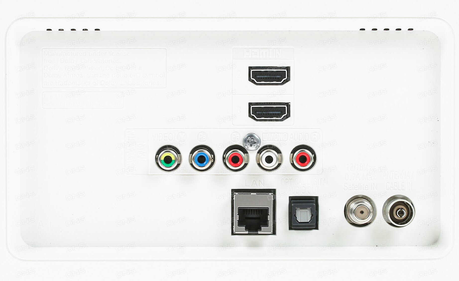 Задняя панель телевизора LG 32LM6380 оснащена следующими интерфейсами: два входа HDMI v.1.4, 2 антенных входа (спутник/кабель), компонентные входы по видео/аудио и 1 порт LAN. Что касается аудио, то на этой же панели расположен только оптический аудиовыход, а выход 3,5 мм для наушников и выход аудио RCA (тюльпан) на два канала отсутствуют.
