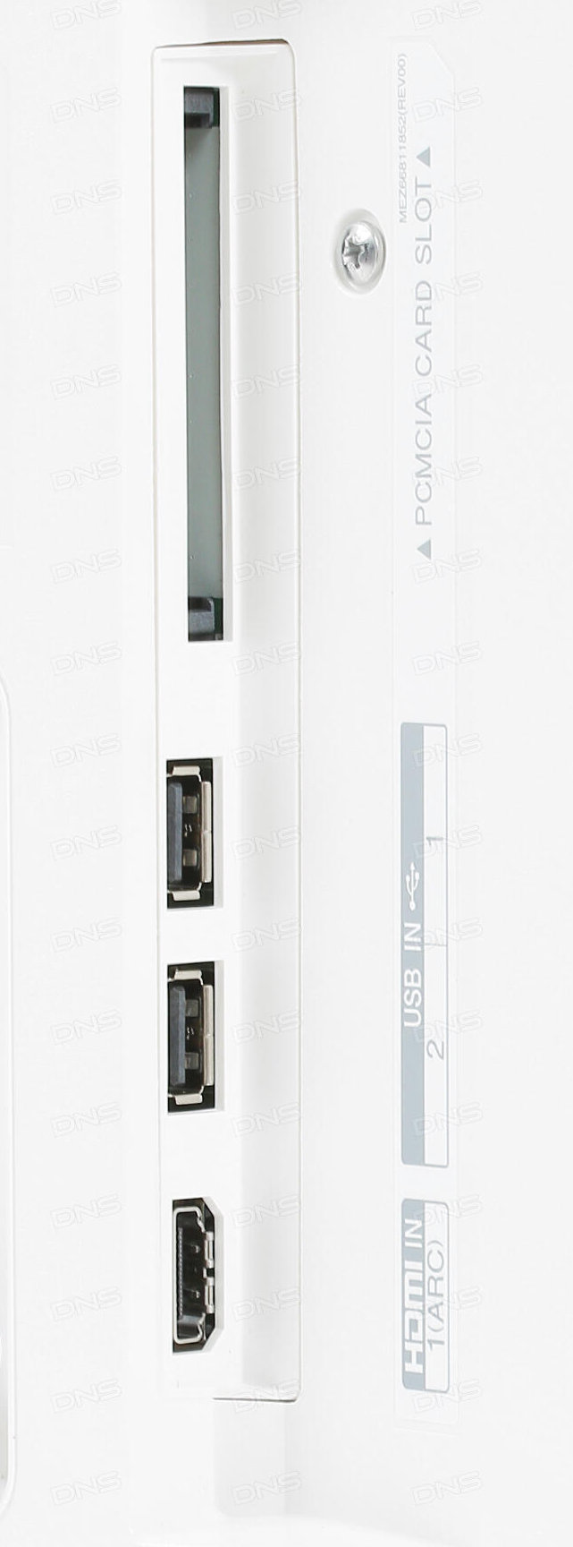 Боковая панель оснащена одним HDMI входом (с поддержкой технологии ARC), двумя разъемами USB 2.0 и слотом условного доступа CI+ новейшей версии 1.4. Кроме того на борту имеются встроенные беспроводные модули Wi-Fi (с поддержкой стандартов 802.11a, 802.11b, 802.11g, 802.11n, 802.11n 5 ГГц, 802.11ac, Wi-Fi Direct) и Bluetooth (поддерживается сопряжение с совместимыми устройствами по протоколу Bluetooth 5.0)