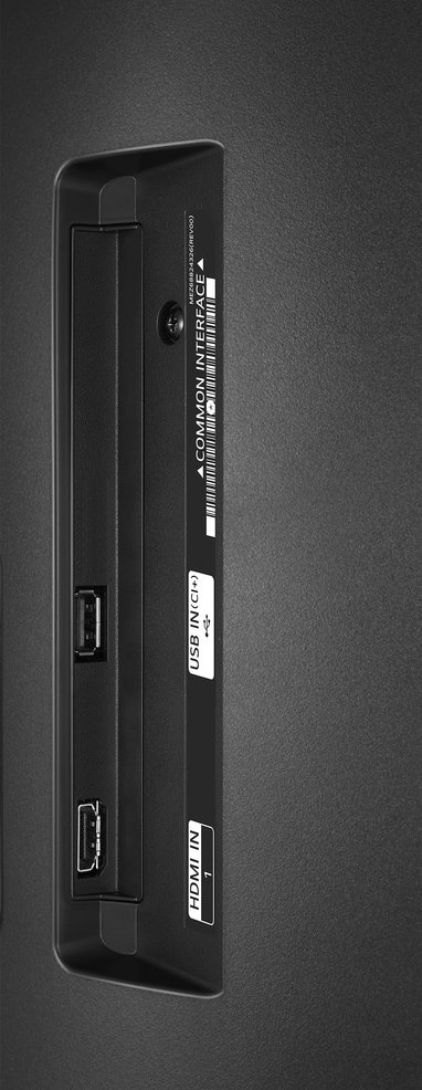 Боковая панель оснащена одним HDMI входом (с поддержкой технологии ARC), klybv разъемом USB 2.0 и слотом условного доступа CI+ новейшей версии 1.4. Кроме того на борту имеются встроенные беспроводные модули Wi-Fi (с поддержкой стандартов 802.11a, 802.11b, 802.11g, 802.11n, 802.11n 5 ГГц, 802.11ac, Wi-Fi Direct) и Bluetooth (поддерживается сопряжение с совместимыми устройствами по протоколу Bluetooth 5.0)