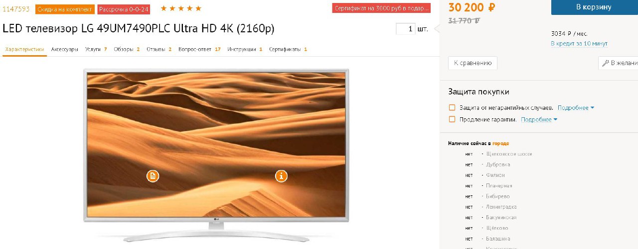 Как вариант, в Oзоне на 800 руб. дороже, но при использовании Ozon Card на 1650 кэша больше, в сравнении с 3000 сертаJackSparrow писал(а):Телевизор LG 49UM7490PLC Ultra HD 4K в Ситилинке по цене 30200 руб. В подарок ещё дадут сертификат на 3000 руб, добавляйте его в корзину. В других магазинах стоимость от 35990 руб.