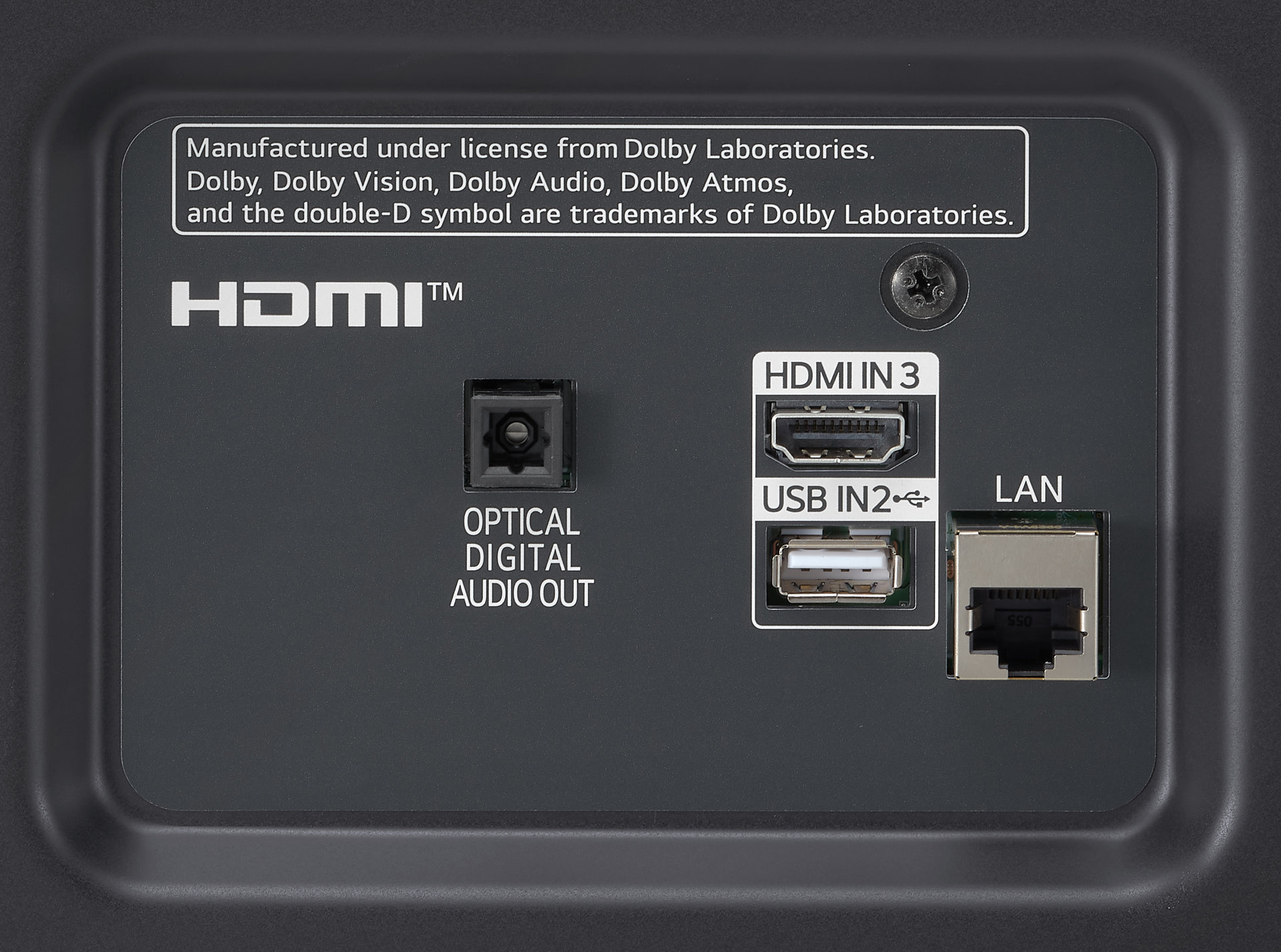 Задняя панель телевизора LG NANO76 оснащена следующими интерфейсами: один вход HDMI, компонентный AV-вход (в версии для США), один порт LAN (со скоростью 100 Мбит/сек), один порт USB (версии 2.0). Что касается аудио, то на этой же панели расположен только оптический аудиовыход, выход 3,5" для наушников отсутствует.