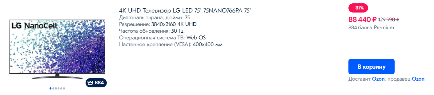- Цена LG 75NANO76