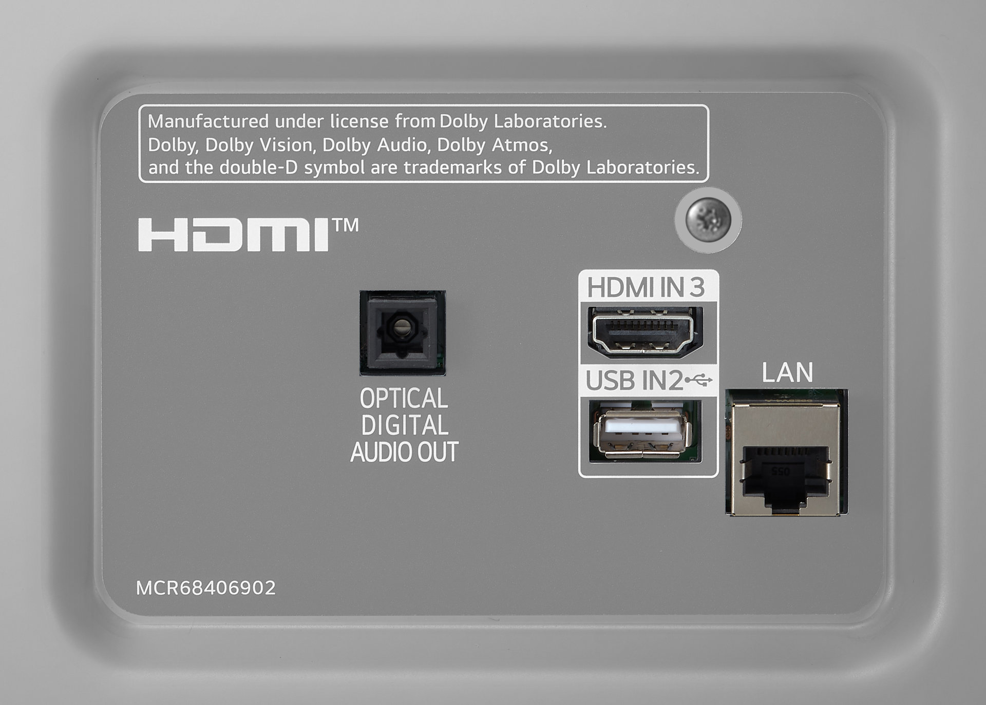 Задняя панель телевизора LG NANO77 оснащена следующими интерфейсами: один вход HDMI, один порт LAN (со скоростью 100 Мбит/сек) и один порт USB (версии 2.0). Что касается аудио, то на этой же панели расположен только оптический аудиовыход, выход 3,5" для наушников отсутствует.