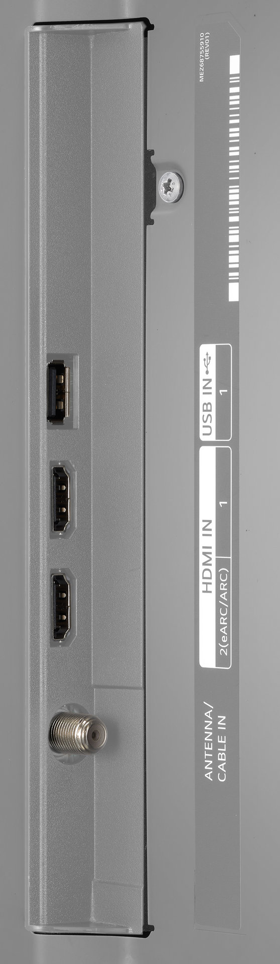 Боковая панель оснащена двумя входами HDMI v2.0 (один из которых совместим с ARC и eARC), одним разъемом USB 2.0, 2 антенными входами (для спутникового и кабельного/эфирного ТВ) и слотом условного доступа CI+. Кроме того на борту имеются встроенные беспроводные модули Wi-Fi (с поддержкой стандартов 802.11a, 802.11b, 802.11g, 802.11n, 802.11n 5 ГГц, 802.11ac, Wi-Fi Direct) и Bluetooth (поддерживается сопряжение с совместимыми устройствами по протоколу Bluetooth 5.0).