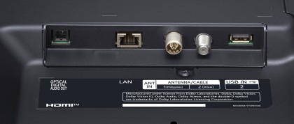 Задняя панель модели 86NANO81 оснащена одним портом LAN (со скоростью 100 Мбит/сек), одним портом USB (версии 2.0) и 2 антенными входами (для спутникового и кабельного/эфирного ТВ). Что касается аудио, то на этой же панели расположен только оптический аудиовыход, выход 3,5" для наушников отсутствует.
